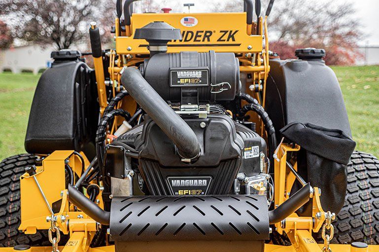 Powerful - With the optional Vanguard EFI 37hp engine, Wright's Stander ZK is the most powerful stand-on in the line up. Vanguard's EFI technology means improved starting, smooth performance at all elevations, and reduced fuel consumption. The high capacity, high flow hydraulics system propels high traction tires for excellent hill holding at cooler oil temperatures.